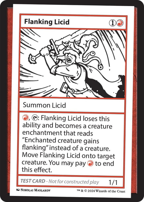 - Rules Text Contains: R: Flanking Licid loses this ability and becomes a creature enchantment that reads "Enchanted creature gains flanking" instead of a creature. Move Flanking Licid onto target creature. You may pay R this effect.